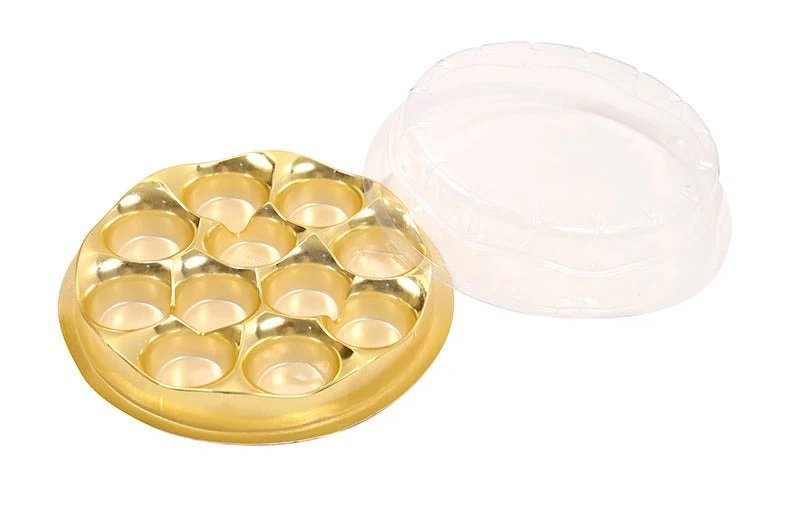 Choose our 11 cavity modak and chocolate plastic round box for a hassle-free and delightful festive experience. Celebrate this Ganesh Chaturthi with style and grace, honoring tradition with our exquisite packaging solutions.